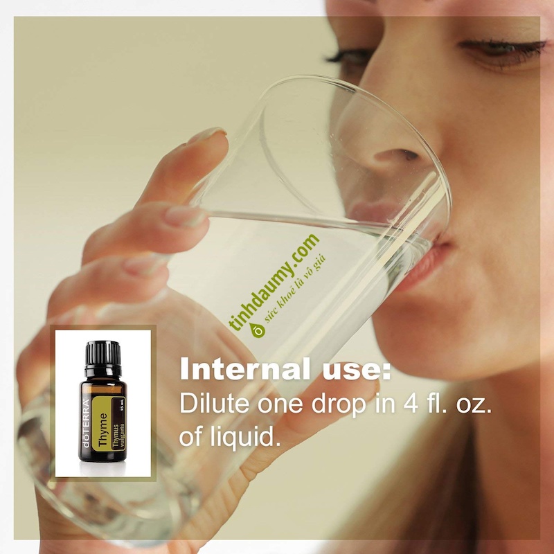 - Dùng đường uống: . pha loãng 1 giọt tinh dầu với khoảng 120ml chất lỏng