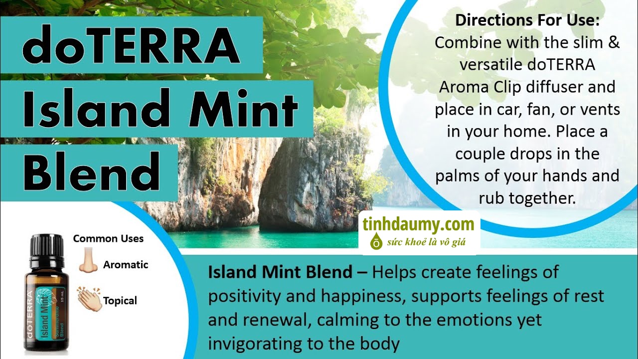 - Thúc đẩy cảm giác thông thoáng đường thở bằng cách thêm Island Mint vào trang sức khuếch tán hoặc máy khuếch tán dōTERRA yêu thích của bạn.